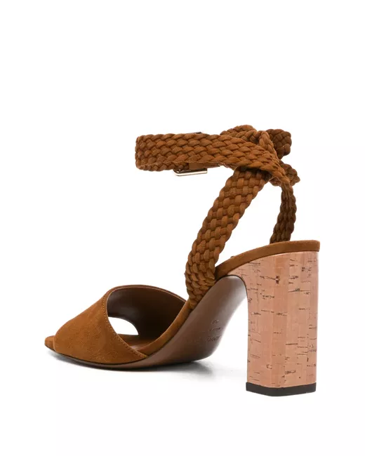 brown suede braided strap buckle fastening cork detail open toe This piece comes complete with a protective dust bag.