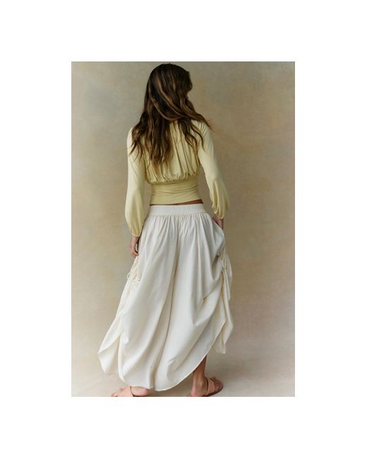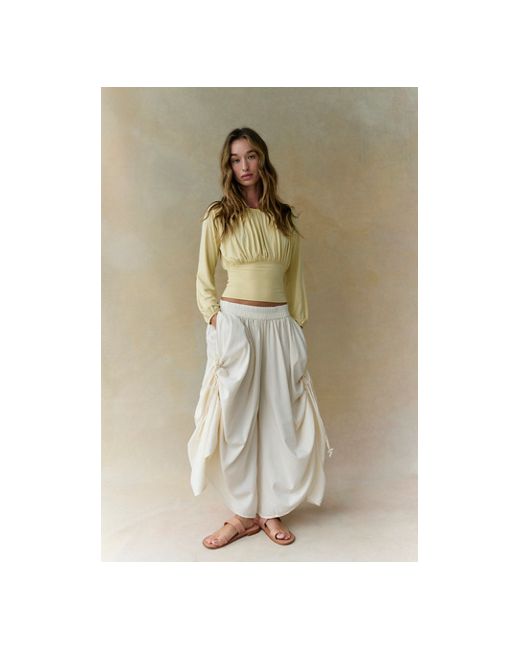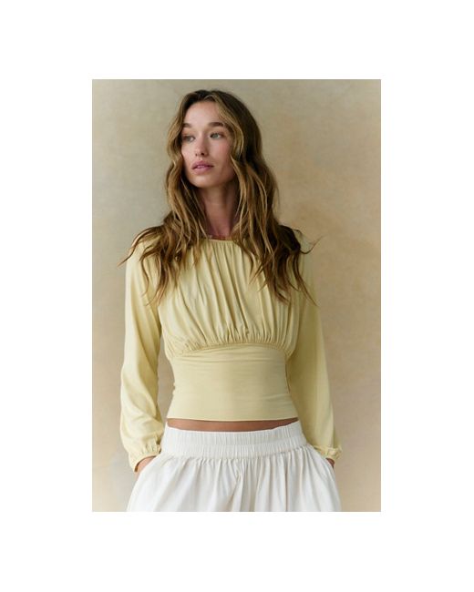 Silhouette is everything with this long-sleeve top from free-est, featured in a so-soft knit with billowy ruched bust, balloon sleeves, and a fitted bodice for interesting shape and movement. * Cropped * Fitted bodice, flowy bust * Long balloon sleeves * Boat neckline Daphne Top by free-est at Free People in Yellow, Size: XS