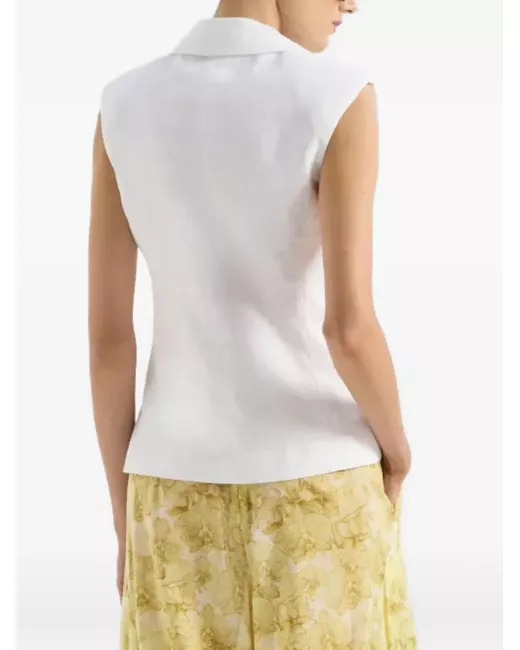 white floral buttons front flap pockets double-breasted sleeveless lapel neck