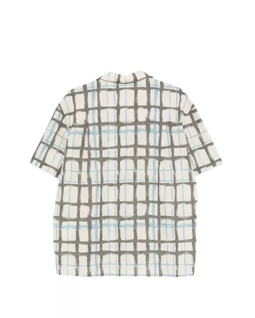 beige checked pattern button fastening short sleeves