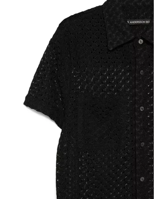 Crochet floral-appliqué open-knit shirt