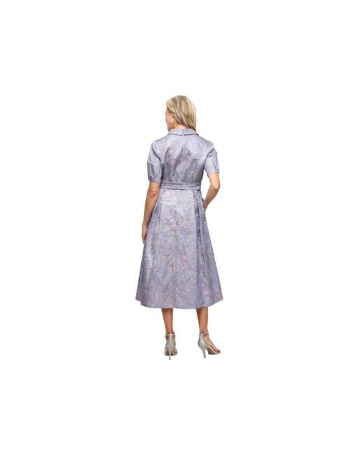Showcasing refined femininity, this Alex Evenings midi dress features a V-neckline, tie waist detail, and bubble-hem sleeves. Center front buttons and lining ensure a flattering, polished fit for formal gatherings.