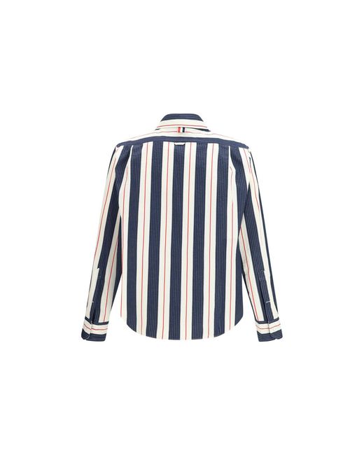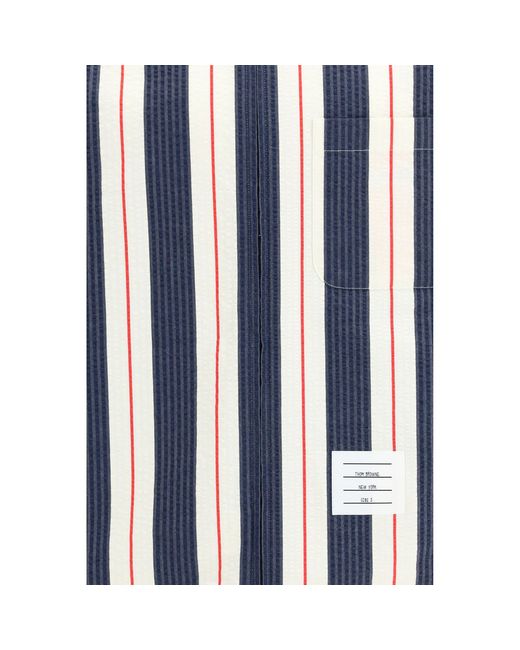 The cotton Shirt with zip by Thom Browne, featuring a striped pattern, combines a casual and sophisticated design. The zip closure and classic collar offer a modern touch, while a patch pocket on the front and the iconic logo patch add distinctive details. A versatile garment that combines comfort and style, perfect for a contemporary and striking look. Season: SS26 Fit: Regular Composition: 100% Cotton
