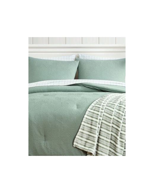 Transform your bedroom with the classic coastal ease of the Nautica broken lines embossed comforter set. Designed in a medium-to-dark sailor green hue, the comforter features a subtle broken-line embossed pattern that evokes the calm texture of ocean waves.