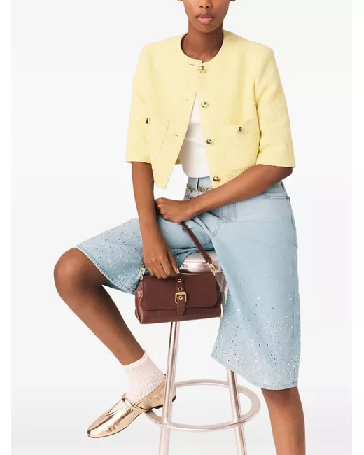 Buttoned-up cropped tweed jacket