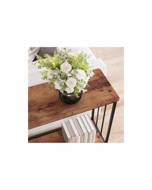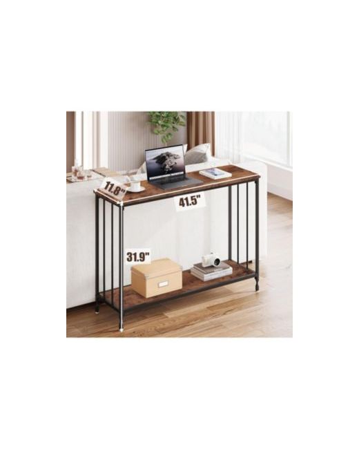 Brown Console Table Sofa Tables Narrow Entryway with Shelf and Metal Frame 415x22 Behind Couch Industrial Hallway for Liv