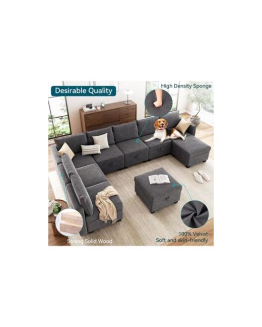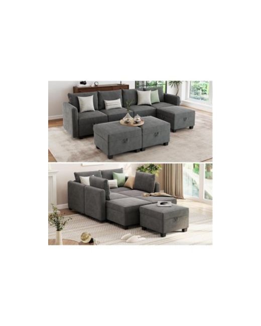 This Gaomon modular sectional sleeper sofa bed offers flexible seating, a pull-out sleeping option, and three movable ottomans. Each seat includes built in storage, making it perfect for maximizing space in living rooms or guest areas. The customizable layout allows you to arrange the pieces to suit your room and comfort needs.