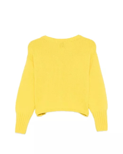 yellow v-neck button fastening ribbed cuffs ribbed hem cashmere