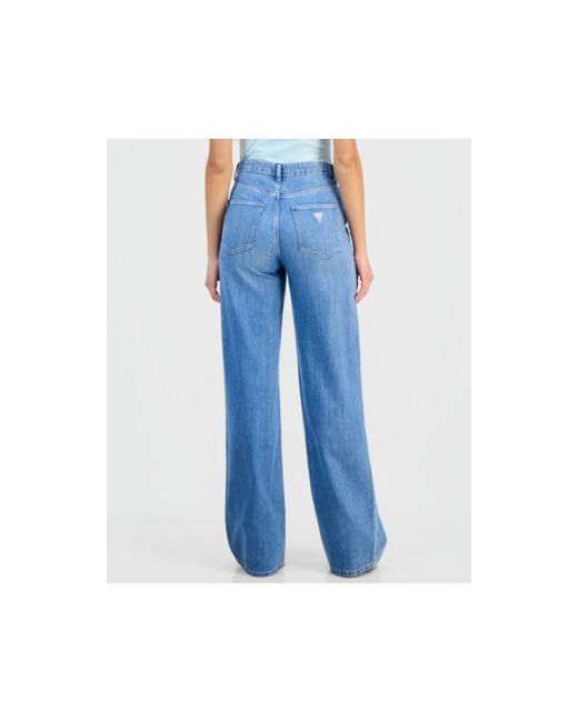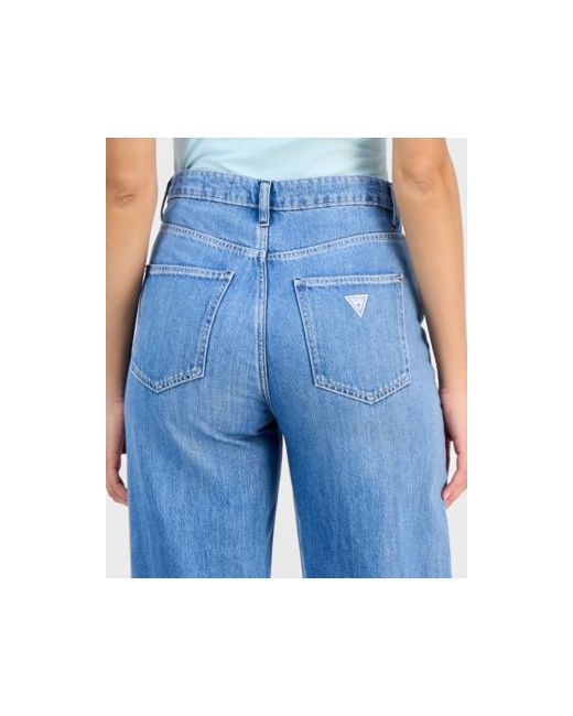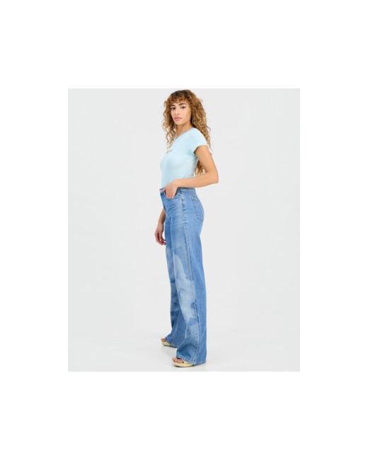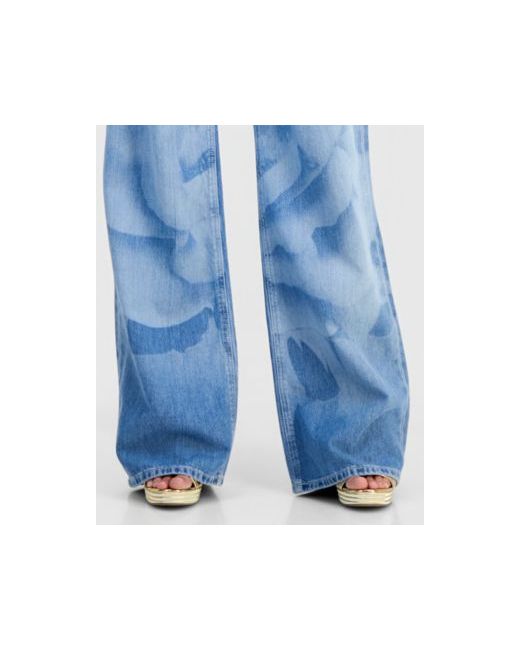 Guess brings a touch of romance to your casual closet with an oversized floral element faded into the wash of these wide-leg jeans.