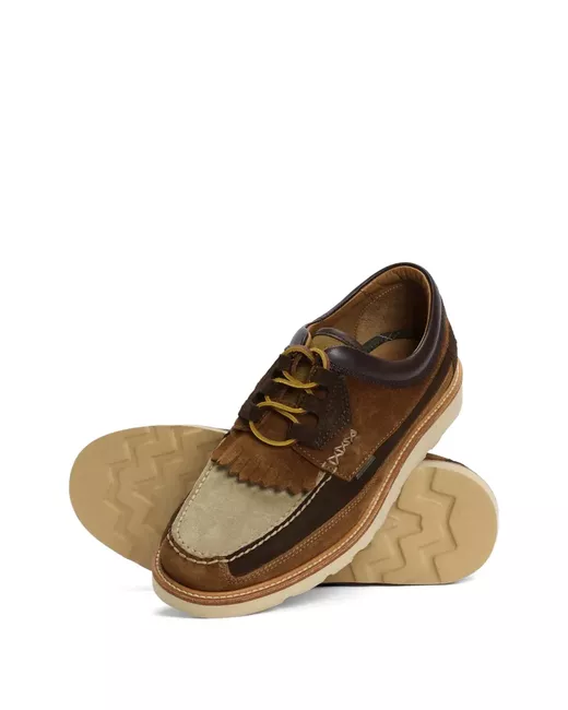 dark brown suede fringe detailing topstitching lace-up fastening stacked sole