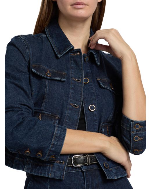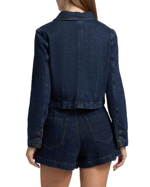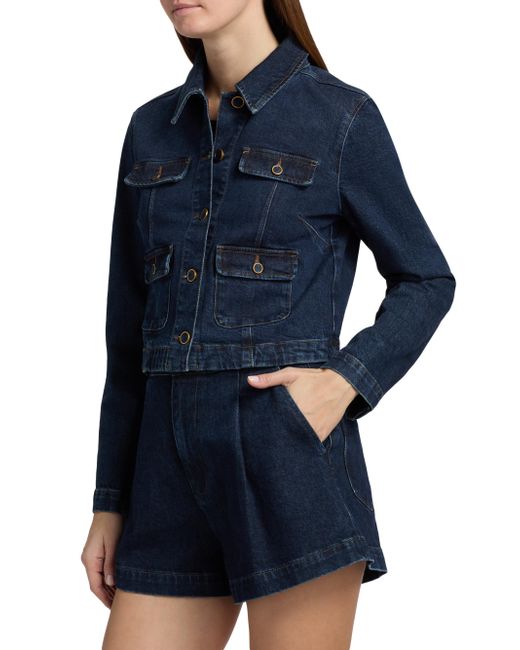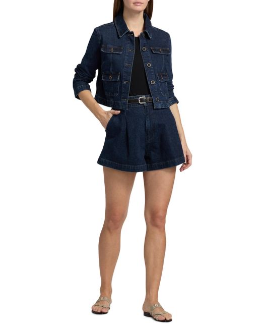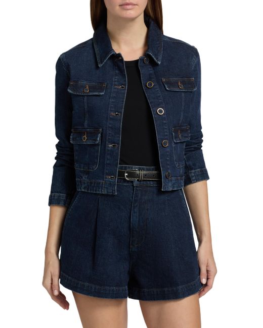 Crafted of stretch cotton denim, the Lydia jacket from Paige features a cropped silhouette and structured utility-style patch pockets. This piece is designed with a classic collar and contrast topstitching for a polished look. Spread collar Long sleeves Chest and side flap pockets Button-front closure 98% cotton/2% elastane Machine wash Imported SIZE & FIT About 20" from shoulder to hem Model measurements: 5'10" tall Model is wearing a US size Small. Contemporary Sportswear - Denim And Bottoms > Paige > Saks Fifth Avenue. Paige. Color: Ballast. Size: XS.