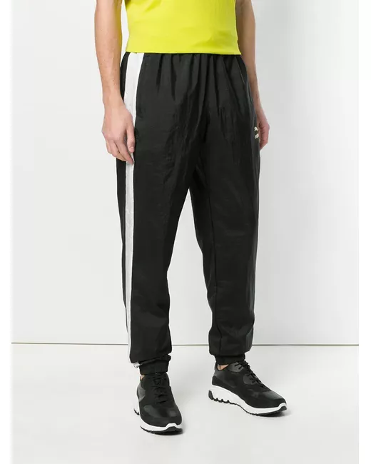 Black and white Bboy track pants from Puma featuring an elasticated waistband with a drawstring fastening, side slit pockets, a printed logo to the front, a back welt pocket and elasticated cuffs.
