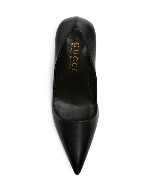 Crafted of smooth leather, the Trinity pumps from Gucci are defined by a sharp point toe and goldtone stiletto heel. Point toe Slips on Leather upper Leather lining Leather insole Leather sole Made in Italy SIZE Stiletto heel: about 3.25" (85mm) ABOUT THE BRAND First launched in 1921, the Italian luxury fashion house quickly became known for its fine leather craftsmanship and accessories. Today, the visionary brand continues to redefine fashion trends, while celebrating creativity and innovation. Gucci's contemporary designs include shoes, clothing and accessories-often boasting the distinctive Horsebit motif. Women's Shoes - Gucci Womens Shoes > Gucci > Saks Fifth Avenue. Gucci. Color: Black. Size: 8.