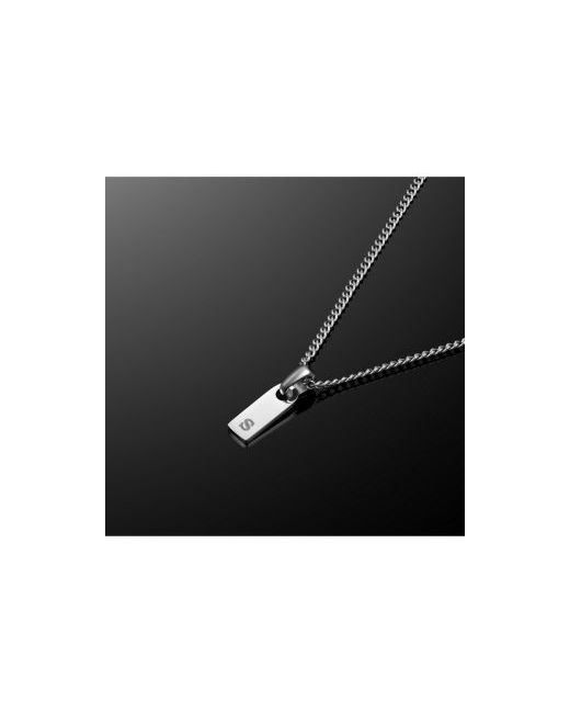 Men's Gray Initial Tag Necklace Silver with Micro Cuban Chain F