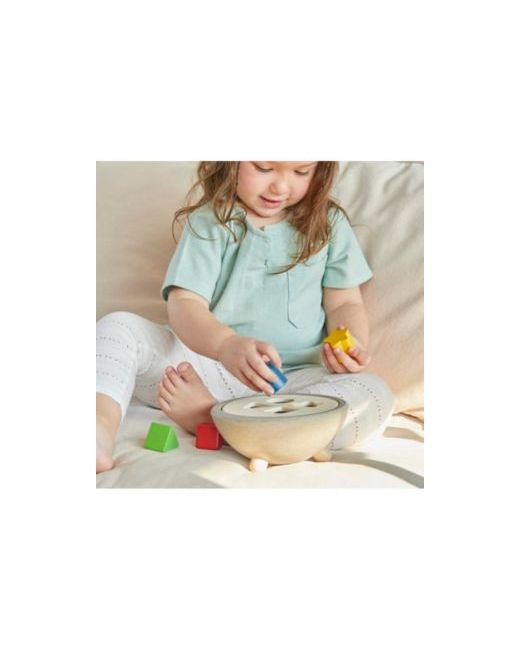 The PlanToys Shape Sorting Bowl is designed to develop coordination and problem solving as chidlren match puzzle pieces to the sorting bowl. Children will match the colored shapes and learn about colors, counting and geometric shapes through play. The Shape Sorting Bowl has a removable lid and the exterior of the bowl is made of PlanWood. The set comes with 4 puzzle pieces, a sorting bowl and lid.