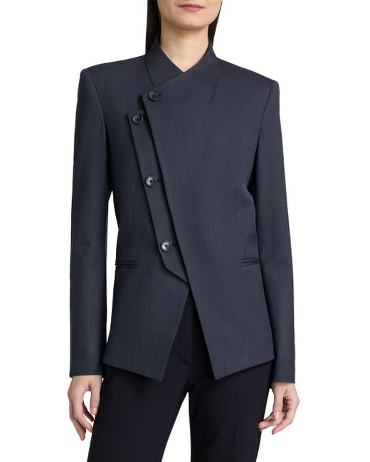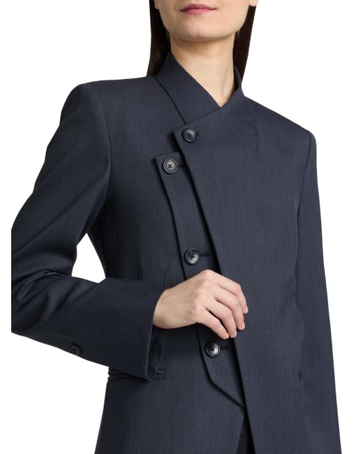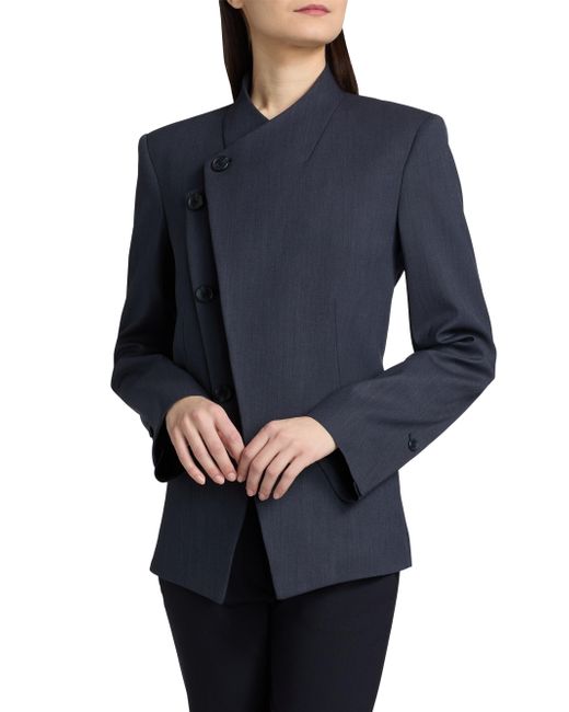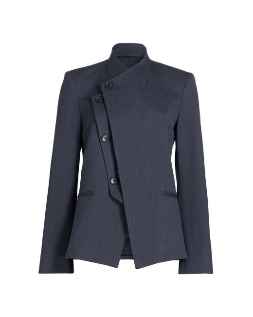 TWP's Oliver single-breasted blazer is crafted in a fine Italian wool twill, tailored with a sharp, elongated silhouette and molded shoulder pads. The asymmetric button-front closure and clean lapel shape add to the straight cut. Clean lapels Shoulder pads Long sleeves, button cuffs Front besom pockets Button-front closure 98% wool/2% elastane Dry clean Made in USA SIZE & FIT This style is constructed in a stretch weave with slight give for a tailored fit About 27" from shoulder to hem Bust: about 36" Model measurements: 5'10" tall Model is wearing a US size Small ABOUT THE BRAND New York-based label TWP offers modern, effortless takes on go-to wardrobe staples. On a mission to democratize luxury, founder Trish Westcoat Pound, of Haute Hippie fame, focuses on high-quality details and subtle-yet-alluring silhouettes to create elevated, everyday pieces-all made in the U.S. with fabrics sourced from Italy. Contemporary Sportswear - Contemporary Lifestyle > Twp > Saks Fifth Avenue. TWP. Color: Indigo. Size: XS.
