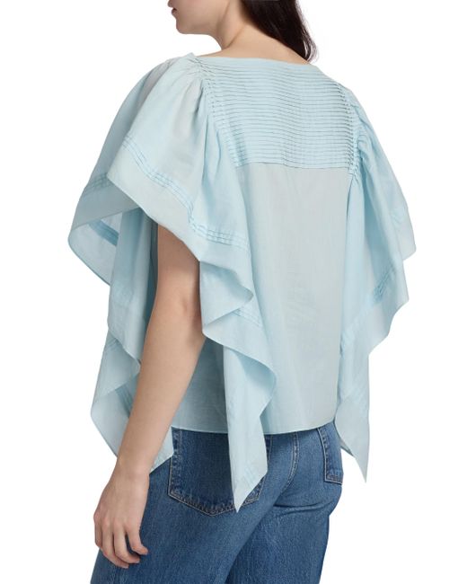 Ulla Johnson's Lu top cascades with an airy cotton construction with draped sleeves integrated into the sides. Textured with a pintucked yoke, this boxy silhouette features a sophisticated boat neckline. Boatneck Draped short sleeves Pulls over 100% cotton Hand wash Imported SIZE & FIT Model measurements: 5'10" tall Model is wearing a US size 4 ABOUT THE BRAND Manhattan-based designer Ulla Johnson credits her archaeologist parents as inspiration for her namesake ready-to-wear label, founded in 1998. Natural fibers, easy fits and meticulous finishes are seen in each collection, which incorporate sweeping silhouettes, and printing and dyeing techniques from around the world. Contemporary Sportswear - Contemporary Lifestyle > Ulla Johnson > Saks Fifth Avenue. Ulla Johnson. Color: Adriatic. Size: 00.