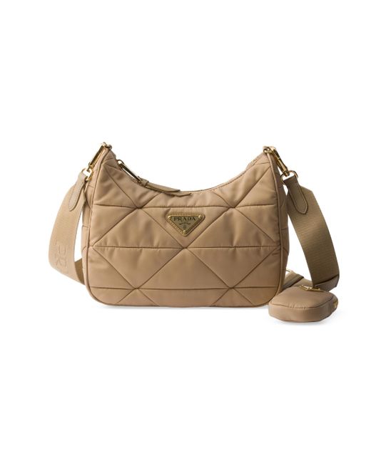 Padded triangle motif Adjustable woven tape shoulder strap Detachable Re-Nylon zipper pouch Metal hardware Enameled metal triangle logo on the front Zipper closure Logo-print Re-Nylon lining with zipper pocket 100% Polyamide 9.4'' W x 8'' H x 3.1'' L Imported. Lsd Handbags - Prada Handbags Access > Prada > Saks Fifth Avenue. Prada. Color: Light Brown.