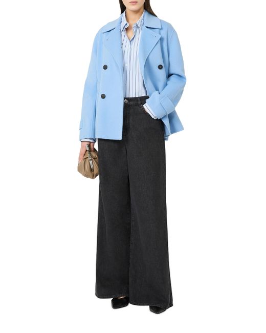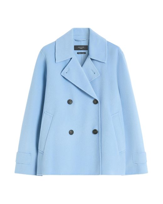 Short, double-breasted pea coat. Pea coat made from hand-sewn, wool-blend double fabric Slightly flared fit with a central rear slit Dual-use lapel collar Set-in sleeves with cuff tab detail Button fastening Welt side pockets Half-lined model Fabric 90% virgin wool, 10% polyamide, - except joining thread, sleeves lining 52% polyester, 48% viscose Do not wash, do not bleach, do not tumble dry, cool iron, professionally dry clean perchloroethylene - mild process, do not wet clean Imported. Lsd Rtw - Womens Rtw Lsd Mp > Weekend Max Mara > Saks Fifth Avenue. Weekend Max Mara. Color: Light Blue. Size: 0.