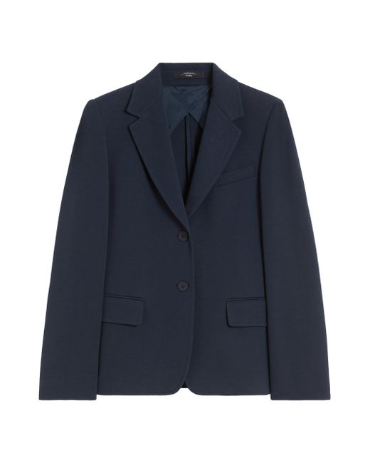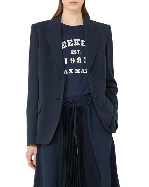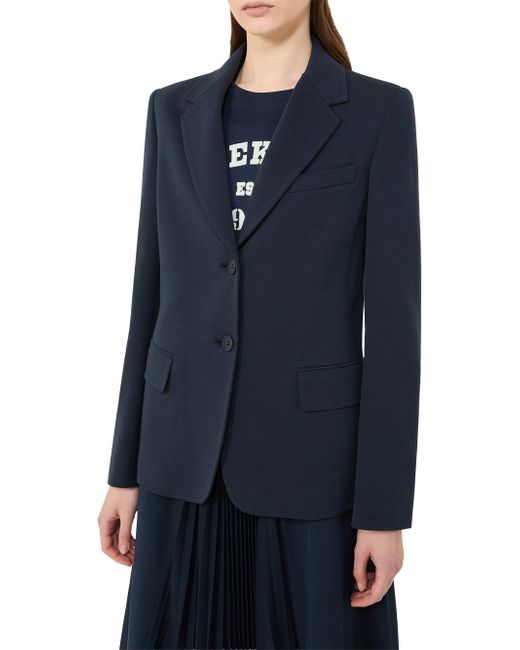 Slightly fitted single-breasted blazer. Double-faced cotton jersey blazer Lapel collar Long set-in sleeves Two-button front fastening Breast pocket and flap welt pockets Lined model Jersey fabric 72% cotton, 28% polyester, lining 95% polyester, 5% elastane Do not wash, do not bleach, do not tumble dry, cool iron, professionally dry clean perchloroethylene - mild process, do not wet clean, iron with a cloth between Imported. Lsd Rtw - Womens Rtw Lsd Mp > Weekend Max Mara > Saks Fifth Avenue. Weekend Max Mara. Color: Navy. Size: XS.