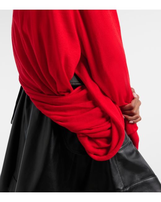 Material: 99% virgin wool, 1% polyamide. Care instructions: dry clean. Made in Italy. Designer color name: Red. Embroidery: 100% polyester. Collar: V-neck. Cuff: ribbed. Wool.