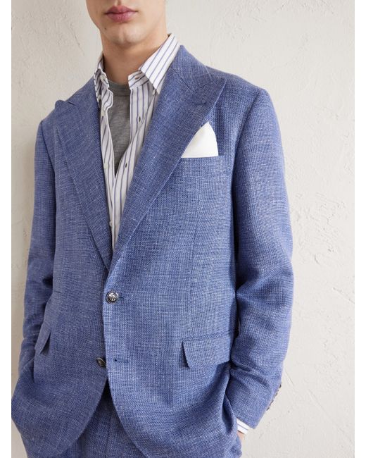 Brunello Cucinelli's collections are entirely handmade in the hamlet of Solomeo, Italy. This suit jacket is woven from a premium mix of wool, silk, linen and cashmere, so it'll work from summer to spring. It's cut in a classic, single-breasted profile and partially lined to structure the shoulders.