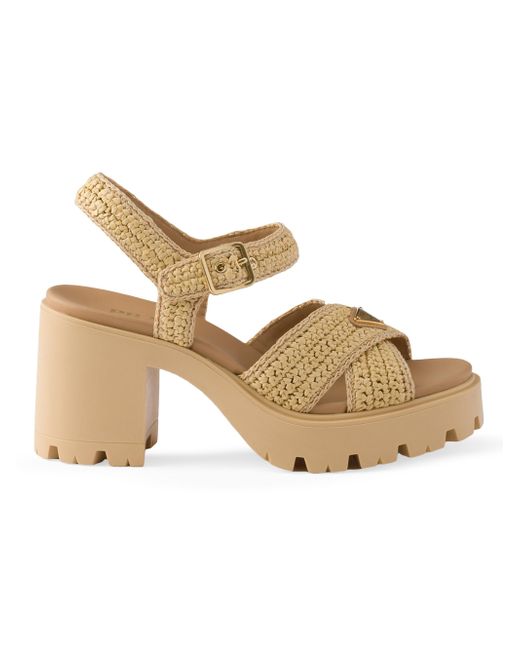 Upper with instep strap and metal buckle Enameled metal triangle logo Rubber sole, 90 mm / 3.5'' Lug tread Leather-covered insole Imported 100% Viscose. Lsd Rtw - Prada Rtw > Prada > Saks Fifth Avenue. Prada. Color: Beige Khaki. Size: 5.