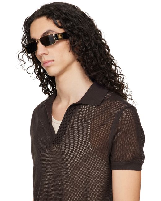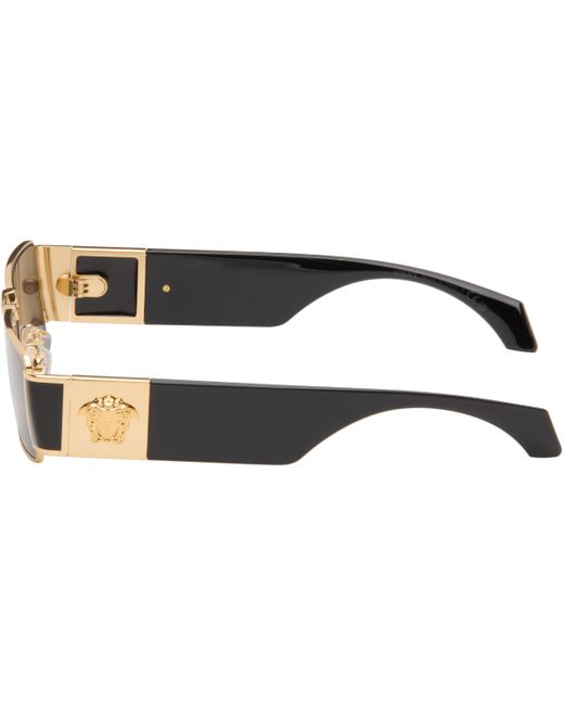 Men's Black Gold Medusa Plaque Rectangular Sunglasses