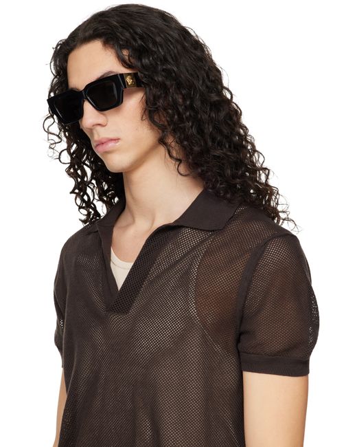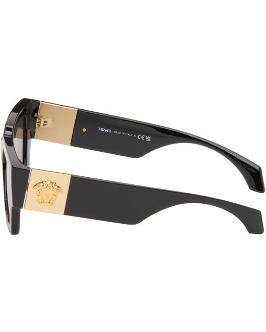 Rectangular acetate-frame sunglasses. · Gray lenses · Integrated nose pads · Medusa plaque at temples · Includes case · Size: 53.15 140 Supplier color: Black
