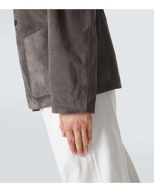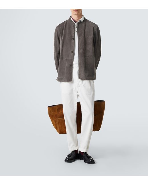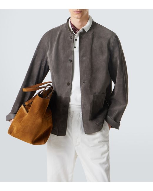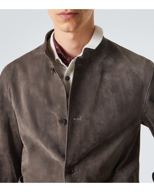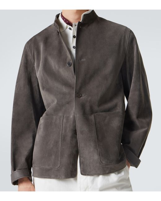 Material: 100% calf leather (suede). Care instructions: specialist clean. Made in Italy. Designer color name: Drab. Lining: 100% cotton. Pocket lining: 55% cotton, 45% cupro. Closure: buttoned front. Pockets: patch pockets, internal pocket. Leather.