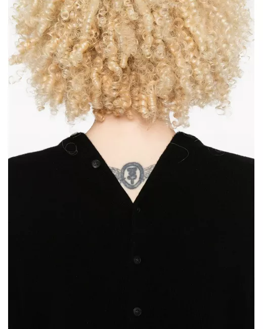black button fastening long sleeves logo patch V-neck