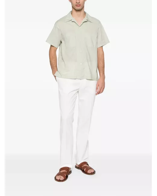 green cotton chest patch-pockets button fastening short sleeve camp collar