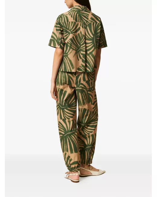 green/beige jungle print elasticated waistband drawstring hem cotton