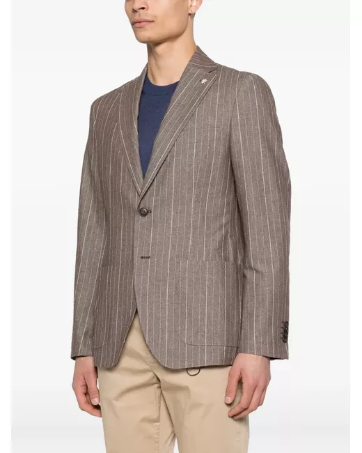 brown stripe two-button fastening notched lapels front patch pockets buttoned cuffs