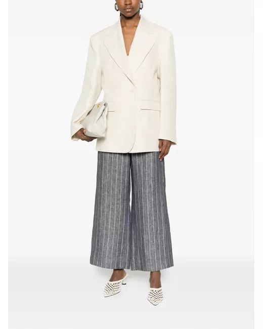 beige notched lapels single-breasted front button fastening long sleeves flap pockets