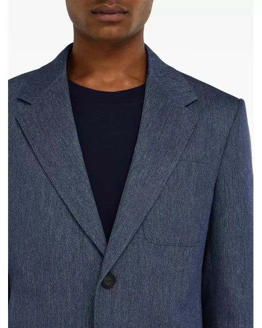 Tailoring seen through the lens of Maximilian Davis' creative minimalism. Single breasted blazer with impeccable proportions and the appeal of denim-look fabric. The result is a sophisticated garment that fits like a glove, with patch pockets for a more relaxed feel. blue button-fastening