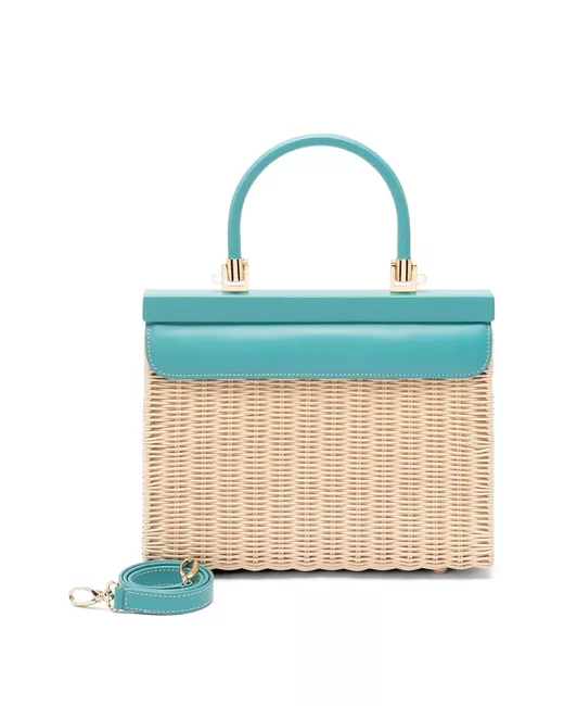 beige/jade wicker top handle detachable shoulder strap gold-tone hardware twist-lock fastening
