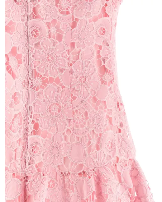 pink openwork lace shirt collar ruffle hem zip back fastening