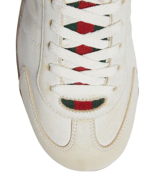 Crafted of leather, Gucci's Shift sneakers are crafted of leather with a distinctive washed finish. This low-top pair is styled with the labe's signature Web details and a rubber sole. Round toe Lace-up style Leather upper Leather lining Rubber outsole Made in Italy ABOUT THE BRAND First launched in 1921, the Italian luxury fashion house quickly became known for its fine leather craftsmanship and accessories. Today, the visionary brand continues to redefine fashion trends, while celebrating creativity and innovation. Gucci's contemporary designs include shoes, clothing and accessories-often boasting the distinctive Horsebit motif. Women's Shoes - Gucci W Shoes > Gucci > Saks Fifth Avenue. Gucci. Color: White. Size: 5.