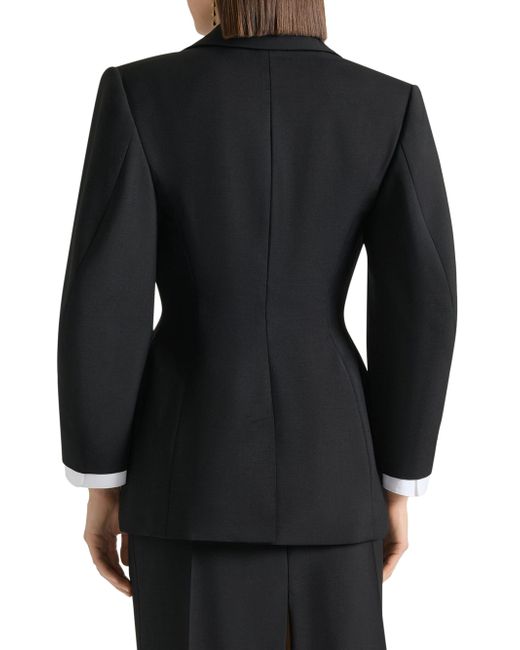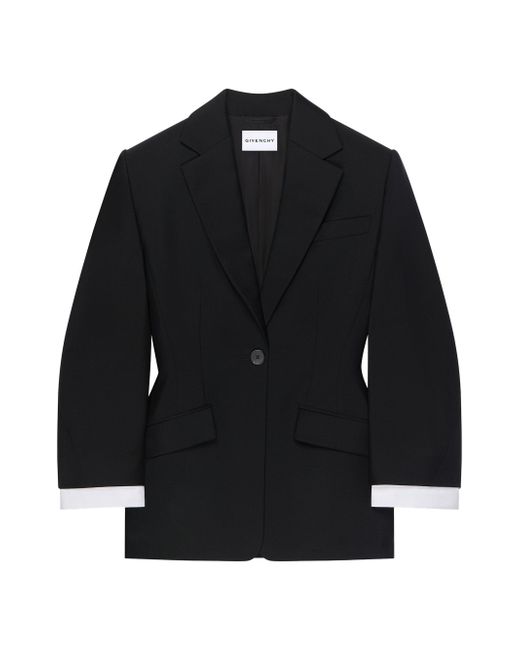 Single-breasted Cocoon jacket in wool and mohair. Volume is exaggerated patterns reworked and seams inverted to shape the Cocoon silhouette. Jacket in wool and mohair Notch lapel Single breasted One chest pocket Two front flap pockets Removable white cuffs details Couture seams on the sleeves for a cocooning volume Composition: 73% wool 27% mohair Secondary material: 100% cotton Lining: 100% polyester Made in Italy. Lsd Rtw - Givenchy Rtw > Givenchy > Saks Fifth Avenue. Givenchy. Color: Black. Size: 2.