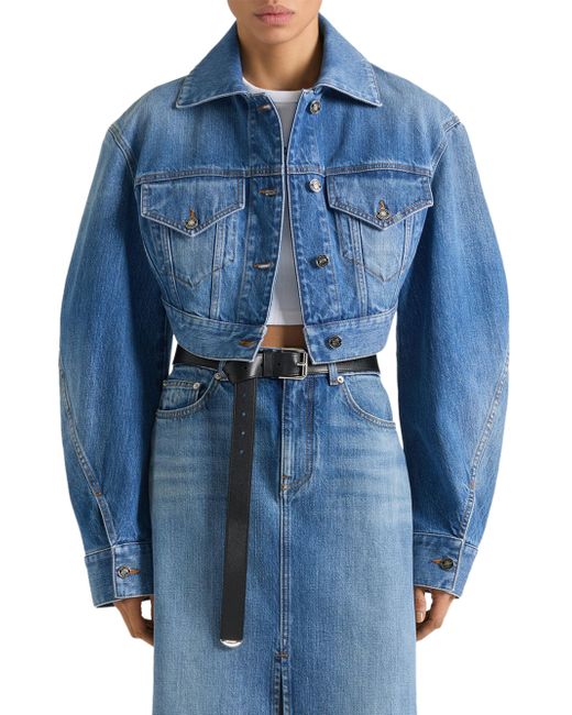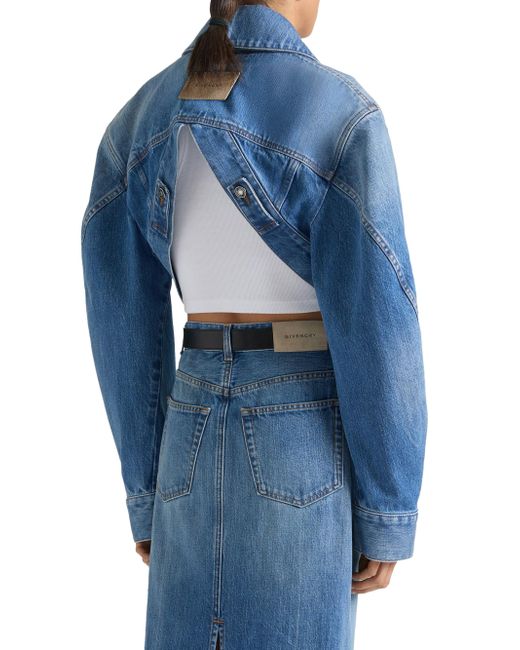 Cropped opened back jacket denim. Jacket with washed effect Classic collar Givenchy suede patch on the upper back Button closure Buttoned cuffs Givenchy engraved buttons Open back Two flap chest pockets Cropped fit Composition: 100% cotton Made in Italy. Lsd Rtw - Givenchy Rtw > Givenchy > Saks Fifth Avenue. Givenchy. Color: Medium Blue. Size: 2.