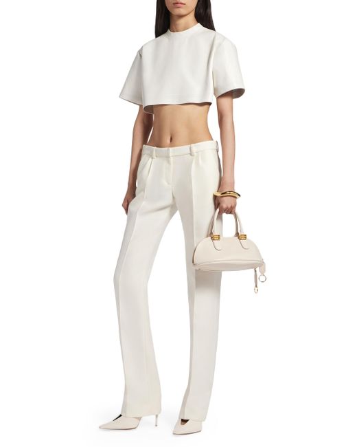 Wool and silk blend for a slightly shiny look and a soft hand Covered zip fly with snap button 4 belt loops 2 slash pockets at front 1 buttoned pocket at back Creased legs Main material: 80% wool, 20% silk Lining: 100% cupro Pocket lining: 100% cotton Made in Italy. Lsd Rtw - Balenciaga Rtw > Balenciaga > Saks Fifth Avenue. Balenciaga. Color: Ivory. Size: 2.