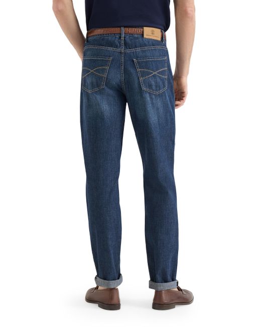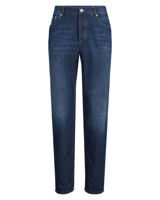Lightweight old denim traditional fit five-pocket trousers Metal button closureFront pockets with watch pocketBack patch pocketsPlain hemTraditional fit: the fit is characterized by regular proportions in the seat and straight lines down the leg Wash below 30, do not bleach. Do not tumble dry. Hang dry, iron at medium heat. 100%cotton Made in Italy. Lsd Rtw - Brunello Cucinelli Rtw > Brunello Cucinelli > Saks Fifth Avenue. Brunello Cucinelli. Color: Dark Denim. Size: 36.