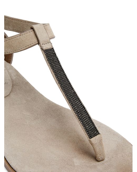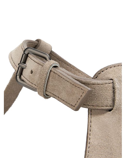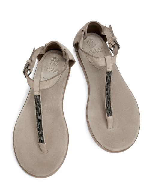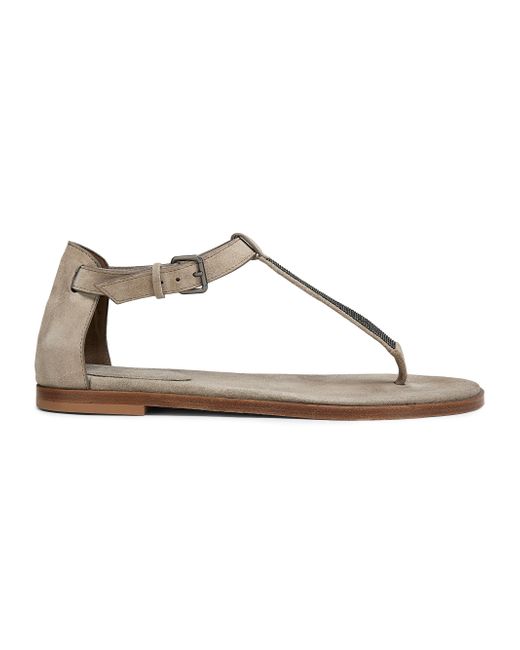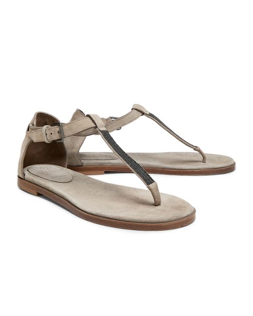 These T-strap sandals from Brunello Cucinelli are crafted of suede, showcasing the brand's signature monili beads. Open toe Buckle closure Suede upper Leather lining Polyurethane insole Rubber sole Made in Italy ABOUT THE BRAND Beginning with a focus in masterfully constructed cashmere pieces, Brunello Cucinelli's namesake heritage label quickly grew to be synonymous with fine Italian craftsmanship and casual luxury. Every sumptuous piece of knitwear or impeccably tailored separate is made in his studio in Solomeo, a 14th-century Italian village he worked to restore and rebuild. Women's Shoes - B Cucinelli W Shoe > Brunello Cucinelli > Saks Fifth Avenue. Brunello Cucinelli. Color: Ice. Size: 6.