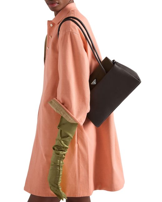 Leather handles, drop 28 cm / 11.0'' Enameled metal triangle logo on the flap Magnetic closure on the flap Nappa leather interior with zipper pocket 100% Calf Leather - 100% Polyamide - 100% Pc-pu Res.solv.free Imported SIZE 28.5W x 14.5H x 12.0L / 11.2''W x 5.7''H x 4.7''L. Lsd Handbags - Prada Handbags Access > Prada > Saks Fifth Avenue. Prada. Color: Brown.