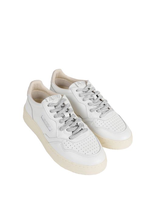 The Medalist Low Sneakers channel Autry's 80s tennis heritage through a clean, contemporary lens. Minimal lines and subtle contrast detailing create a timeless silhouette defined by everyday ease and enduring style. White Leather upper Preforated toe Lace closure Laminated laces
