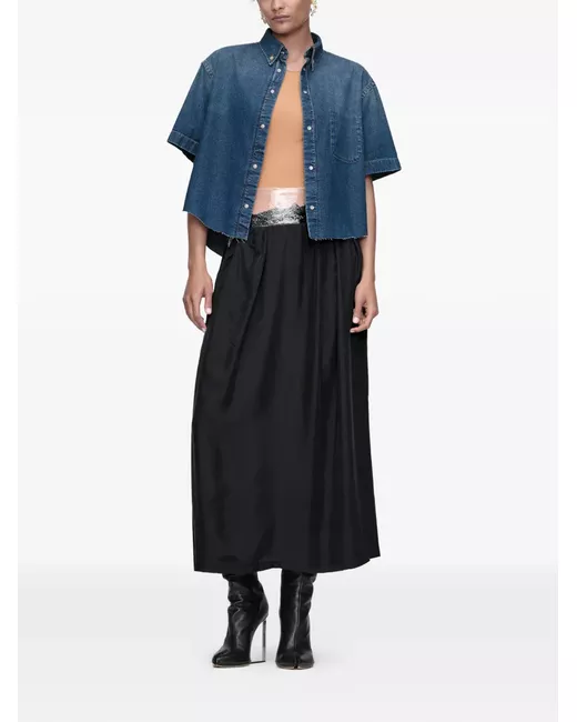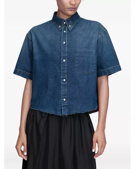blue chest pocket button fastening short sleeves frayed hem cotton