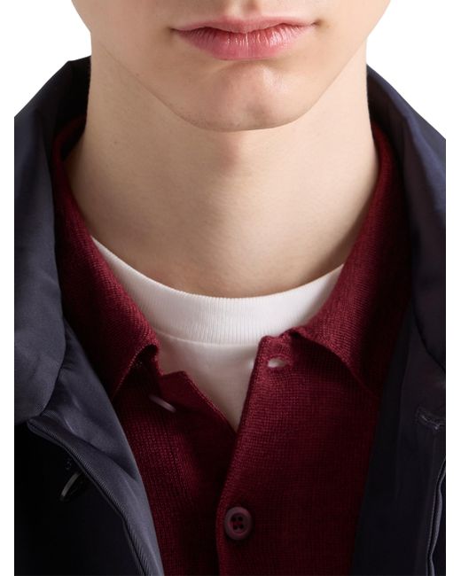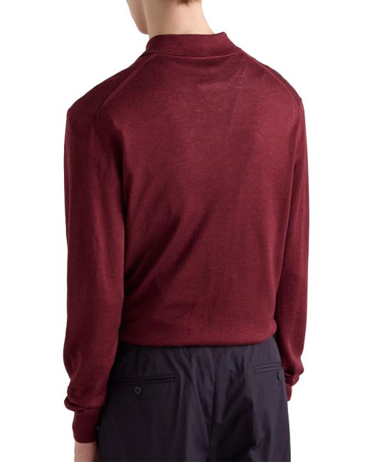 Plain knit Regular fit Semi-raglan shoulder Ribbed knit cuffs and hem Embroidered logo Three-button closure on the front 30% Silk, 70% Fleece Wool - 100% Trochus Niloticus Imported. Lsd Rtw - Prada Rtw > Prada > Saks Fifth Avenue. Prada. Color: Dark Red. Size: 36.