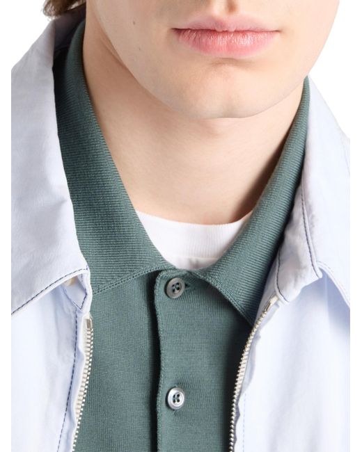Plain knit Slim fit Ribbed knit collar Raglan shoulder Ribbed knit sleeve trim and hem Embroidered logo Front button closure 100% Fleece Wool - 100% Trochus Niloticus Imported. Lsd Rtw - Prada Rtw > Prada > Saks Fifth Avenue. Prada. Color: Light Green. Size: 36.
