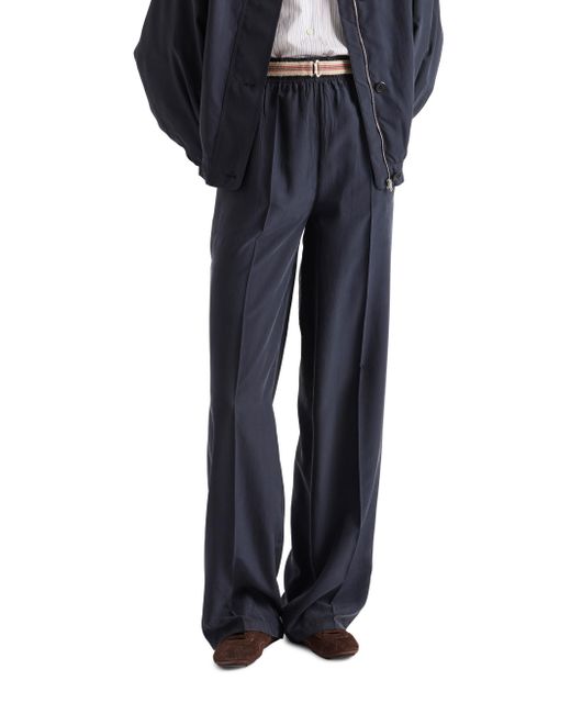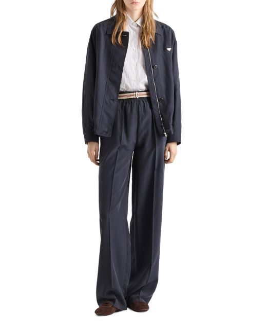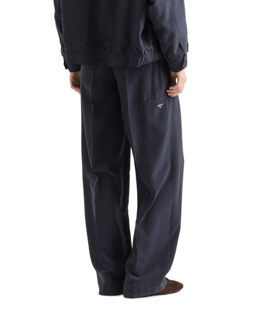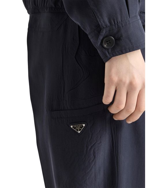 Menswear fit Unlined garment Enameled metal triangle logo Angled front slash pockets Back patch pockets Drawstring waist 100% Silk Imported. Lsd Rtw - Prada Rtw > Prada > Saks Fifth Avenue. Prada. Color: Blue. Size: 0.
